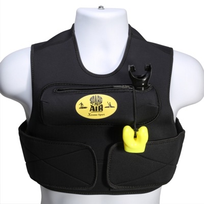 The Xtreme Sport comes with a custom vest to mount your Spare Air. This 1/8 inch neoprene vest comes with easy to adjust side velcro belt, and a secure pouch with an outlet for your regulator mouthpiece. Wear the vest under a PFD and/or outside any other clothing for easy access.