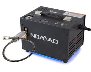 SPARE AIR Xtreme 6 can be filled using a personal breathing air compressor like the Nomad II Portable Compressor powered by 110V, 220V outlet or 12V car battery. A personal breathing air compressor requires a yoke that attaches to our 910S, 920C (included with every SPARE Xtreme) or 930C refill adapter (included with our NOMAD II breathing air compressor). We recommend a quality Air Filter to remove air impurities and moisture created during the pumping process.
